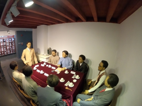 徐梅坤说,三大会址是“在空旷地上独立的一座二层楼,左右没有屋舍毗邻。地势比街边稍高,雨天时能见雨水北流。”虽然是砖木结构的普通居民住宅,但“给我们的印象是很高的,约6米有多,第一层约3米,楼上也有3米。屋的平面近于方形。屋顶从侧看成‘人’字形,以普通民用的辘筒瓦造上盖,记得没有玻璃明瓦。正面屋檐没有栏杆,伸前平遮楼上的走廊,廊不很宽,廊边才有围栏,记得是砖砌平直通窗组成,里外通透,栏面铺上阶砖。屋内南边一间有门出走廊,装单扇门,门向外推,平时是不开的。地下门前的走廊则稍宽些,下雨时不会受雨淋。”