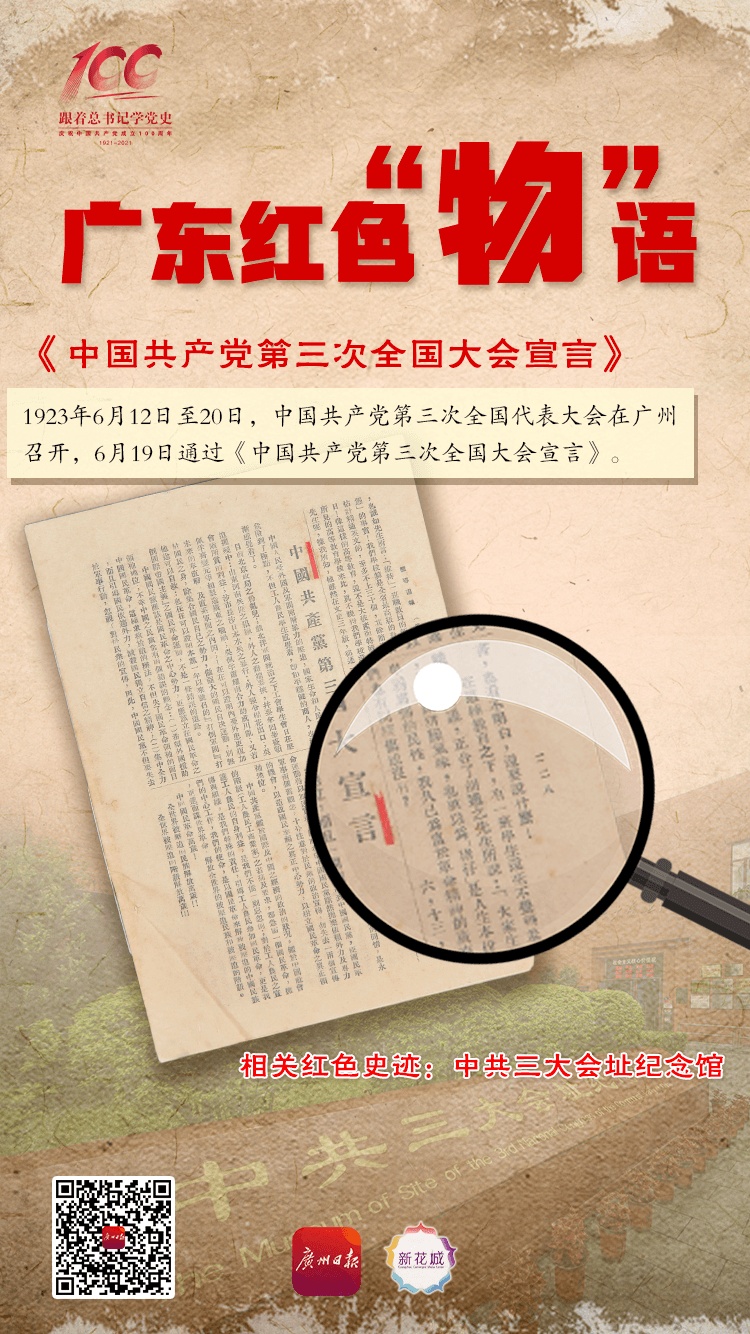 今天的“广东红色‘物’语”专栏,介绍的就是这份宣言,以及中共三大的那些珍贵瞬间。
