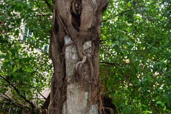 随着时代的发展,昔日空旷的榕树头周边区域渐渐被楼房环绕,古榕的生存空间慢慢被压缩。树身曾遭受过破坏,主干也差点在风雨中倾倒。然而,当苦难过后,大树凭借顽强的生命力熬过了一个又一个的春夏秋冬,如今依然枝繁叶茂。