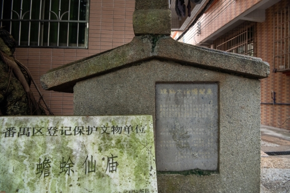在榕树下有一座蟾蜍仙庙,占地面积仅约1.1平方米,全庙用花岗岩砌筑,以“双龙戏珠”作顶脊,檐下刻“蟾蜍仙庙”四字,一副对联分列左右:“民间财富足,天上月当圆”。整个古庙小巧典雅,宛如普通庙宇的微缩版。仔细一看,它还是“番禺区登记文物保护单位”。