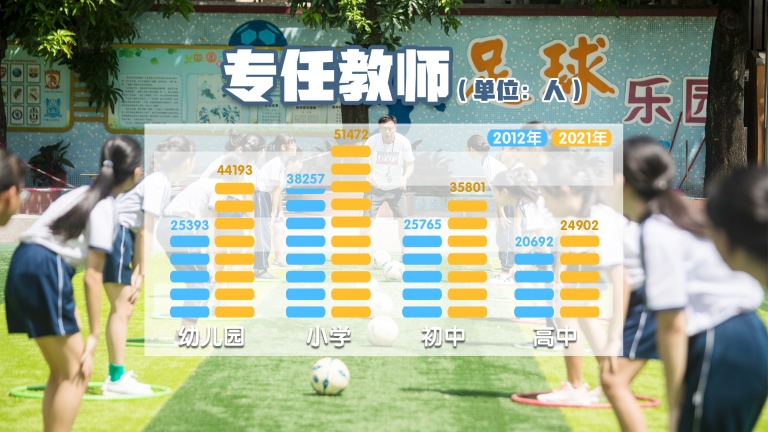 好教育离不开好老师。除了数量增加,十年间广州教师队伍结构持续优化、整体素质水平显著提升。2012年以来,广州依托推进分层分类精准培训,构建形成了教师发展进阶培训、校(园)长进阶培训两大进阶式培训体系。2021年11个区全部落实广东省提出的“幼儿园达到8%、小学达到15%、初中达到30%、高中达到40%”的中小学教师高级岗位结构比例要求。高水平教师队伍进一步壮大,截至2021年12月,全市共有省级以上高水平教育人才823人。