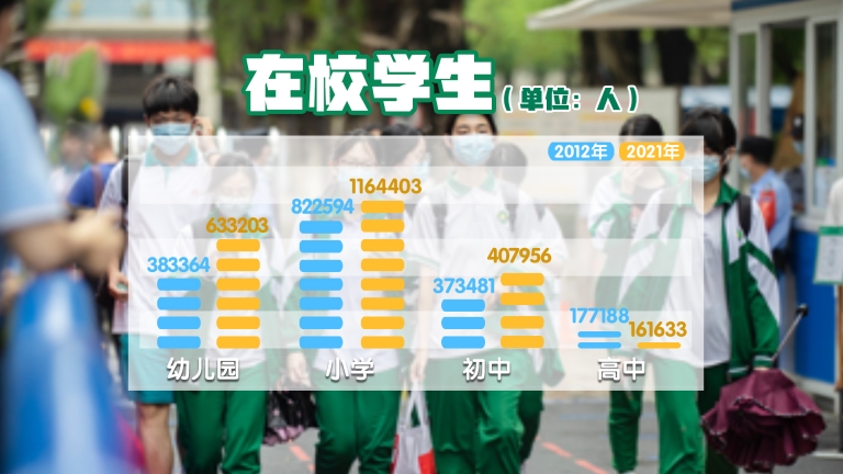 新学年开学,广州“上新”96所公办中小学、幼儿园,更多孩子得以在家门口上好学校、享受好教育。从2012年到2021年10年间,基础教育学段学校新增670所,在校生增加61.5万人,教职工增加7.64万人。区域间、城乡间、校际间教育资源配置更加均衡,11个区全部成功创建成“全国义务教育发展基本均衡区”和“广东省推进教育现代化先进区”,义务教育标准化学校占比达100%。