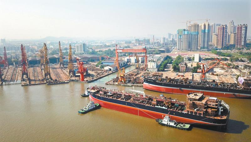 ↑广船国际荔湾厂区最后一艘新船出坞。(资料图片)