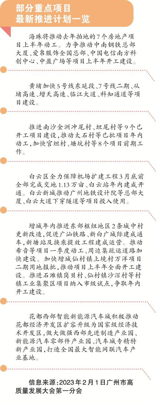 重大项目建设是加快产业提质升级、实现高质量发展的重要抓手。因此,全省、全市高质量发展大会之后,广州第一时间就启动了一季度重大项目签约开工活动。超460多个项目陆续开工、签约,涉及智能制造、数字经济、高端金融、文化创意、重大基建等领域。这些创新能力、行业带动能力强的重大项目陆续开工、投产,将为提升城市能级量级、加快推动高质量发展提供强劲动力。值得关注的是,除了产业布局升级,还有黄埔沙步、黄登旧村改造安置区工程等22个城市更新领域的项目开工建设,总投资764亿元。