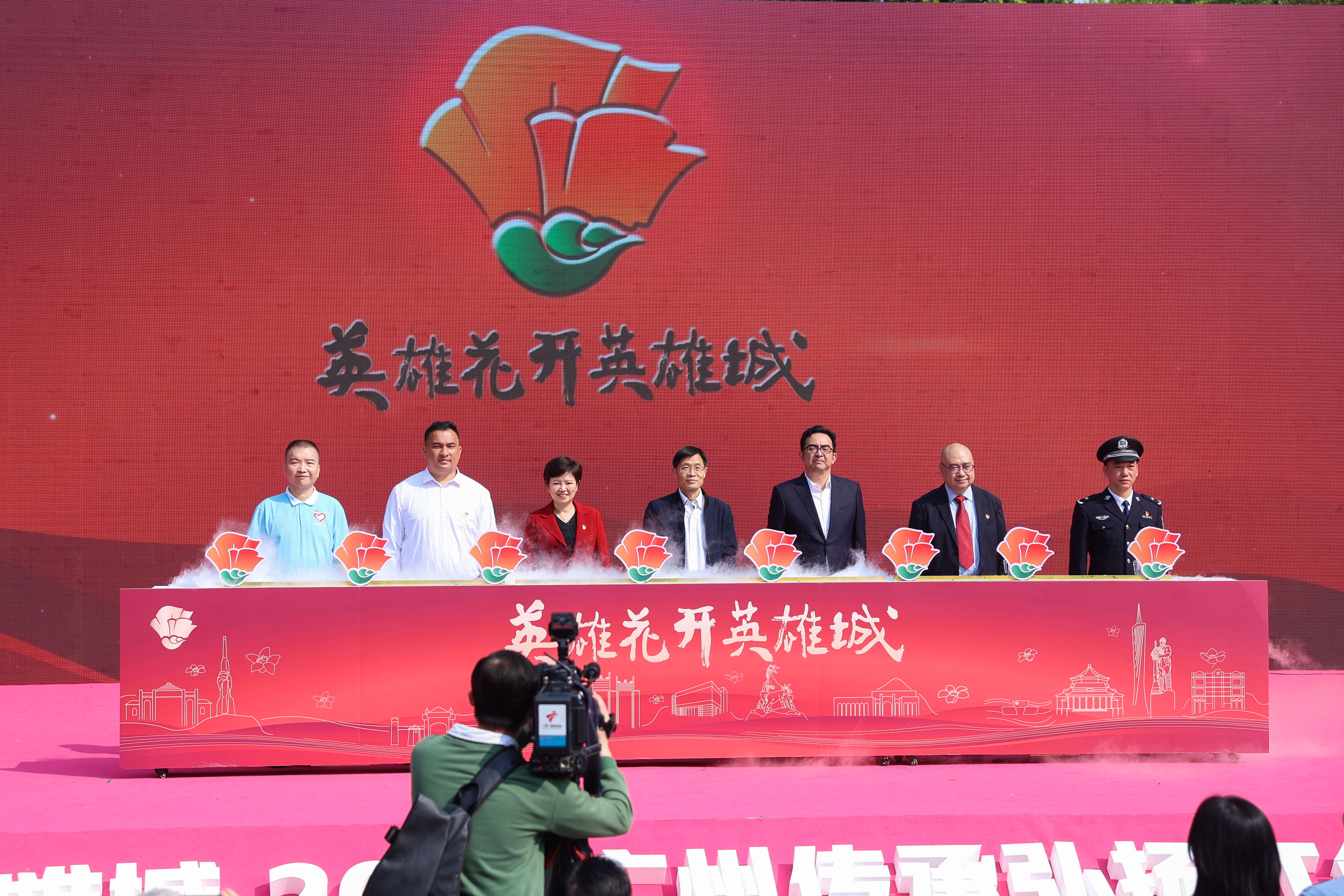 上午十时,广州原创舞剧《醒·狮》铿锵有力、热闹非凡的锣鼓阵阵响起,广州“英雄花开英雄城”系列活动拉开帷幕。