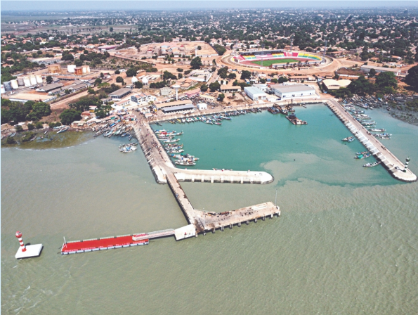 中国援几内亚比绍板丁渔业码头项目,由中铁广州工程局港航公司承建,项目位于几内亚比绍东南向,建设内容为改造原引堤及护岸共414m,新增南北防波堤两座共308m,趸船浮码头1座,港池疏浚20.11万m3,配套建设进港道路、港内道路5600㎡,地坪硬化2700㎡。