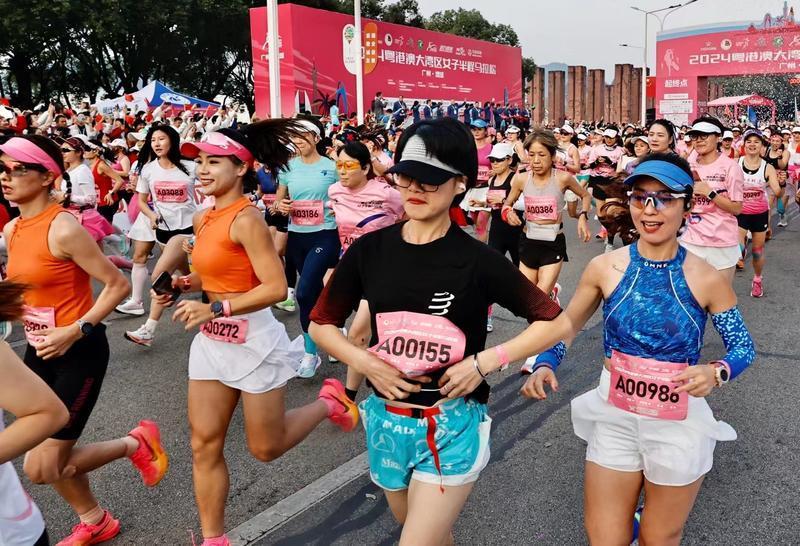 2024年1月1日,粤港澳大湾区女子半程马拉松赛在广州增城举办。记者在现场了解到,这是目前首场以粤港澳大湾区为定位的马拉松赛,同时也是全国规模最大的女子半程马拉松赛,比赛报名总人数19298人,其中女性13767人。赛程包括半程马拉松、10公里健康跑和5公里欢乐跑,设有闺蜜组、情侣组、家庭组等特色组别,以及跑团、商学院赛等赛中赛比拼环节。