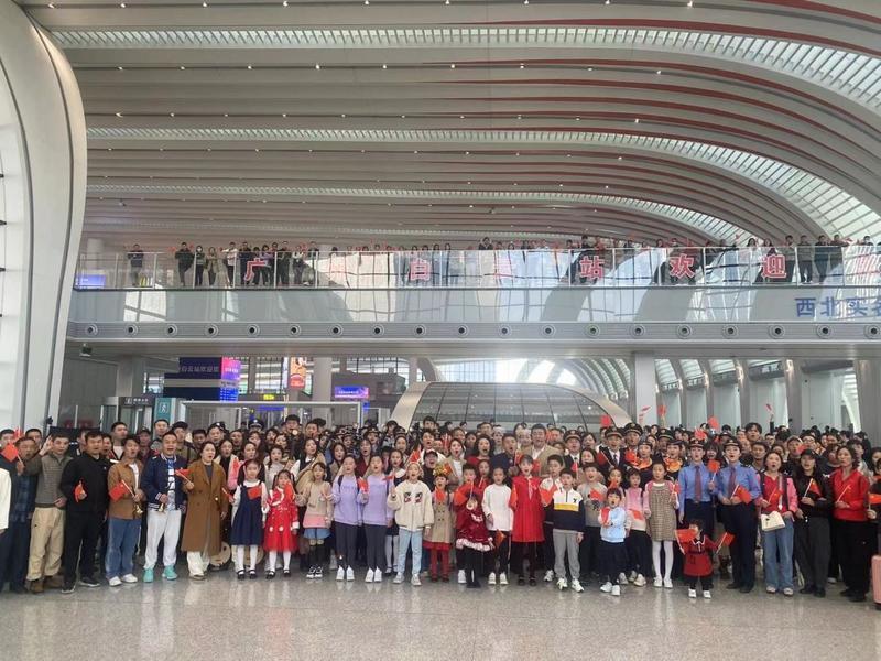 现场,在场旅客以及工作人员一同以歌声拥抱元旦佳节,热烈庆祝新中国成立75周年。而这一场快闪活动的策划负责人表示,广州白云站、白云国际机场、广州南站分别代表了“创新·文化交融”“开放·国际交往”“温情·归乡之路”的主题,通过“同一时间+多地快闪”的特殊形式,更充分彰显出广州作为粤港澳大湾区核心城市,老城市再度迸发新活力的崭新面貌和多元活力。同时,这场快闪也侧面体现刚刚正式投运的——“超级车站”广州白云站助力粤东地区深度“融湾”,展示“轨道上的大湾区”正加速驶向美好未来。
