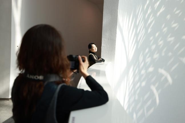 游客在广州艺博院打卡拍照。