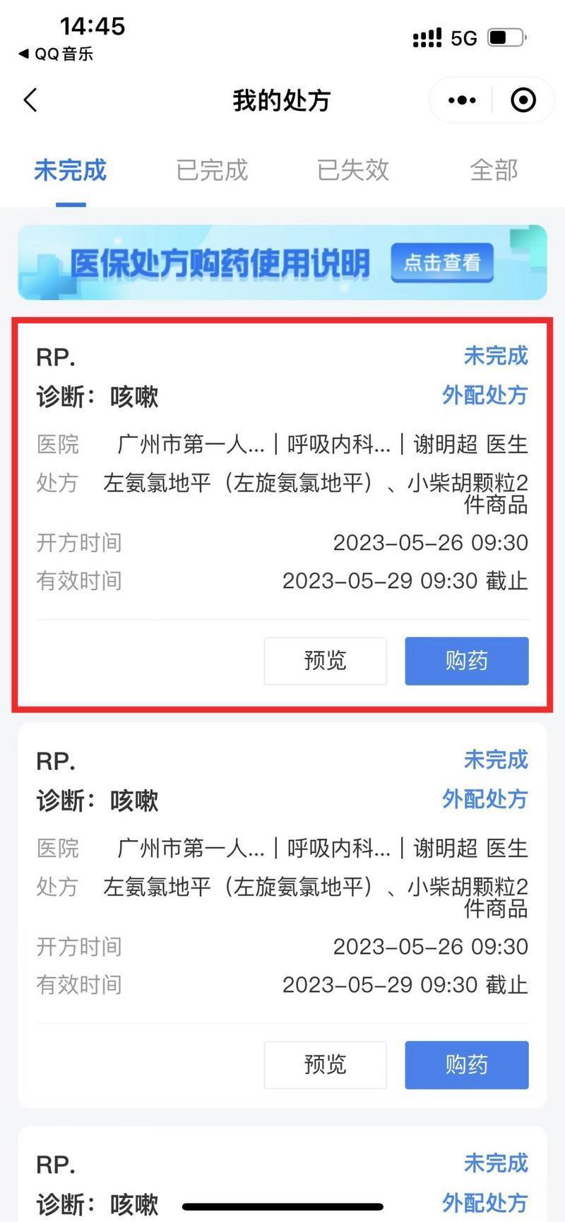 作为全省首个上线“省电子处方流转中心”、应用“粤医保”小程序实现外配处方全流程线上直接结算的试点城市,广州持续推进广州医保便民服务升级,现已全力打通“双通道”药品外配处方业务线上全流程购药途径。