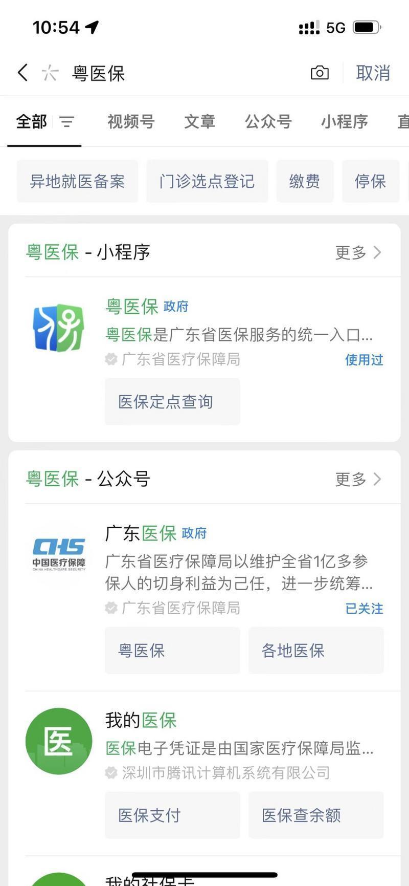 打开微信,搜索“粤医保”,点击进入“粤医保”。