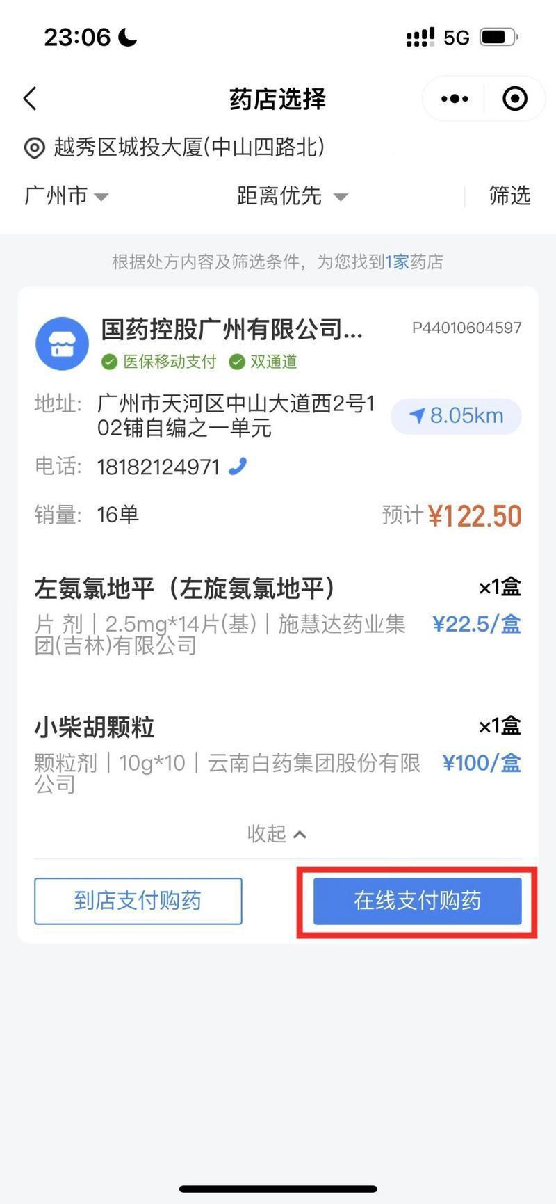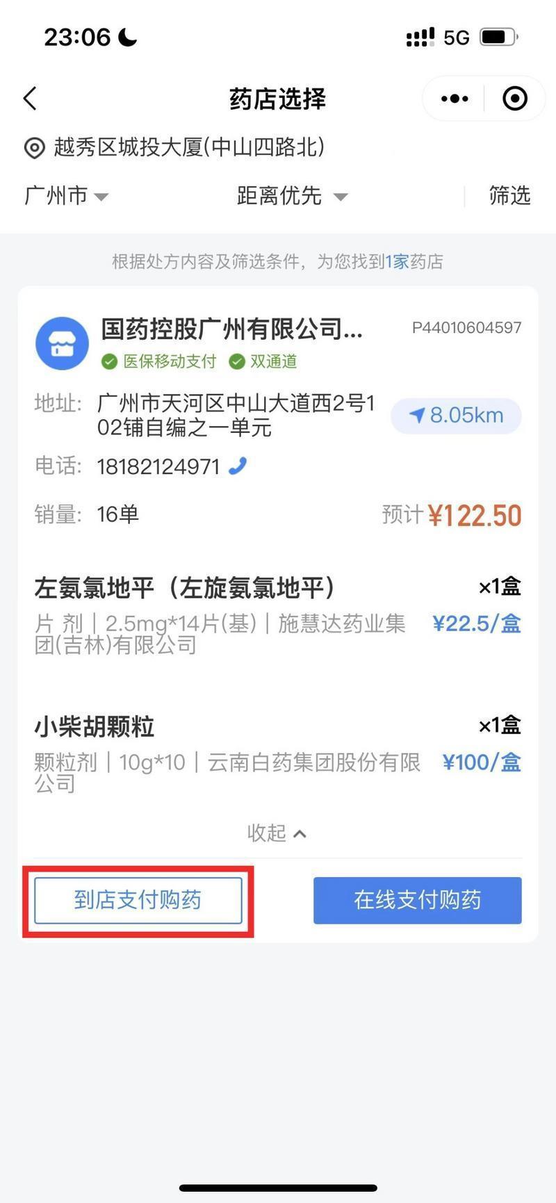 介绍基于处方如何在粤医保渠道查出可购药药店、如何到店展码、结算、取药。