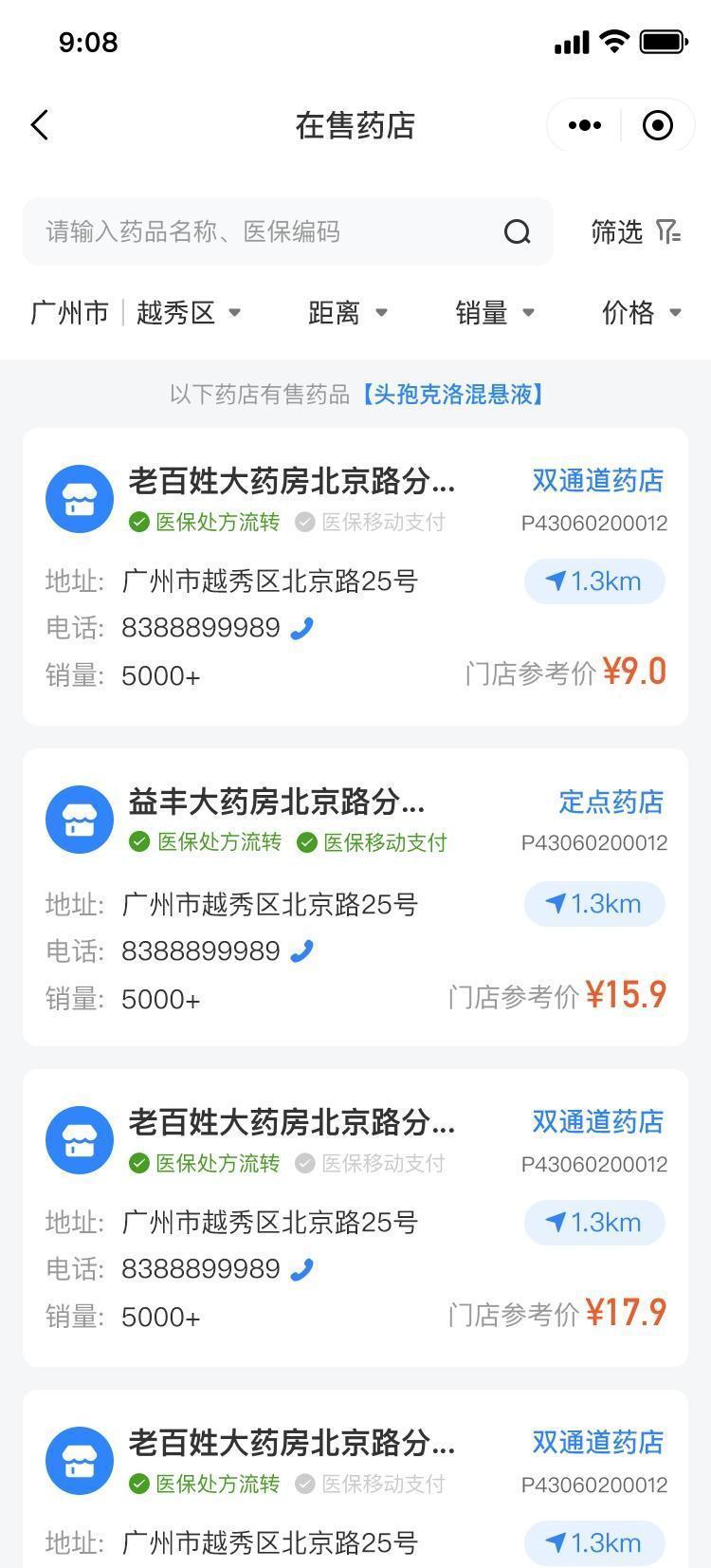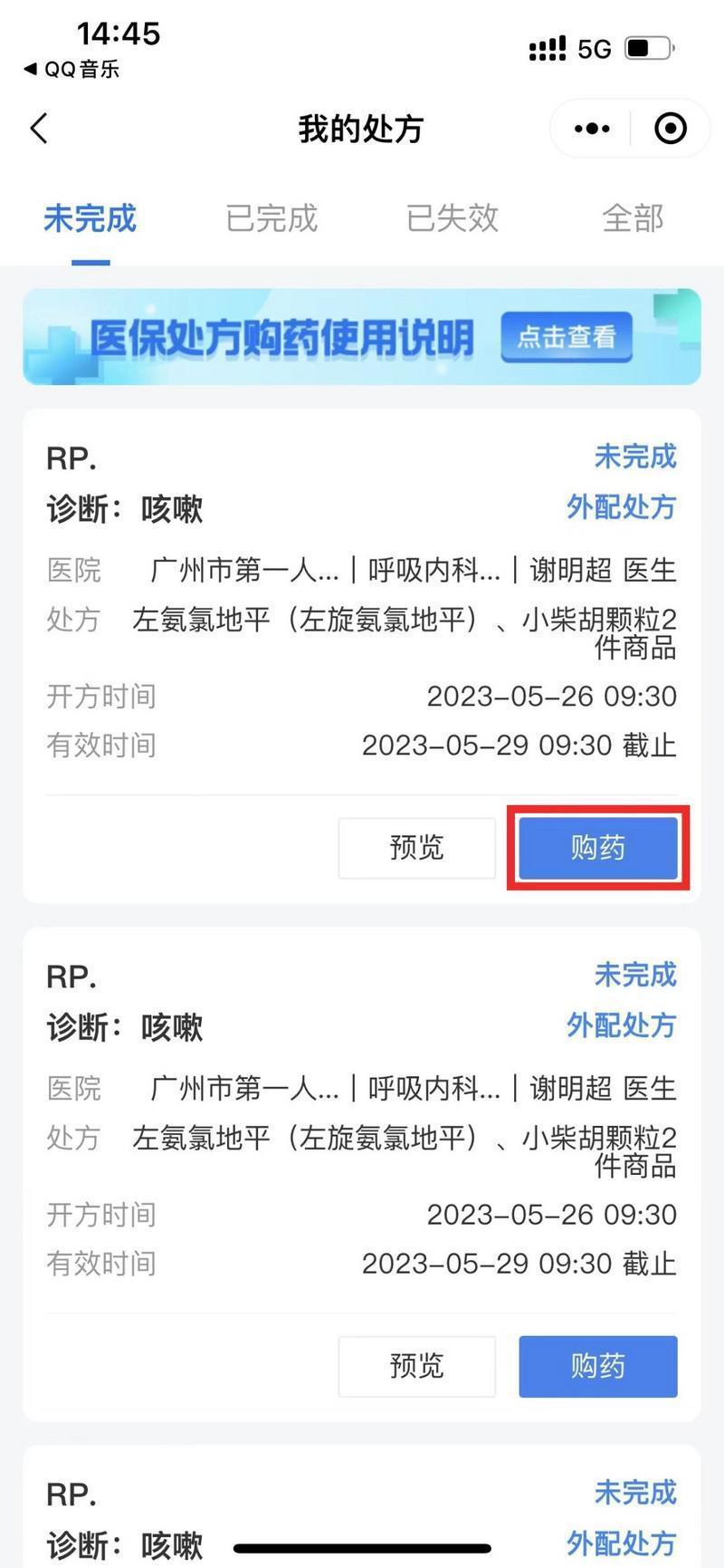 街坊们按广州医保规定选点就医时,如主诊医生因诊疗需要开具“双通道”药品外配处方的,可直接通过手机微信查找“粤医保”小程序,在线选取药店购买处方上的药品,通过“在线支付购药”途径线上支付药费并同步享受医保报销、药品配送到家服务。