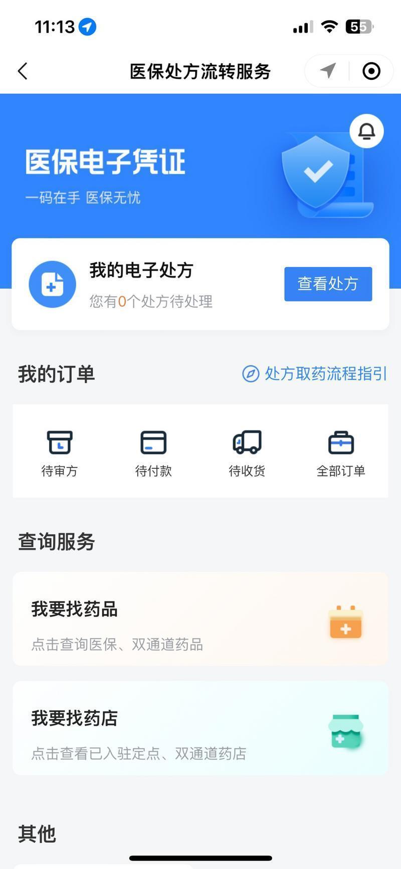基于上一页面,下滑找到“我的电子处方”,点击进入。