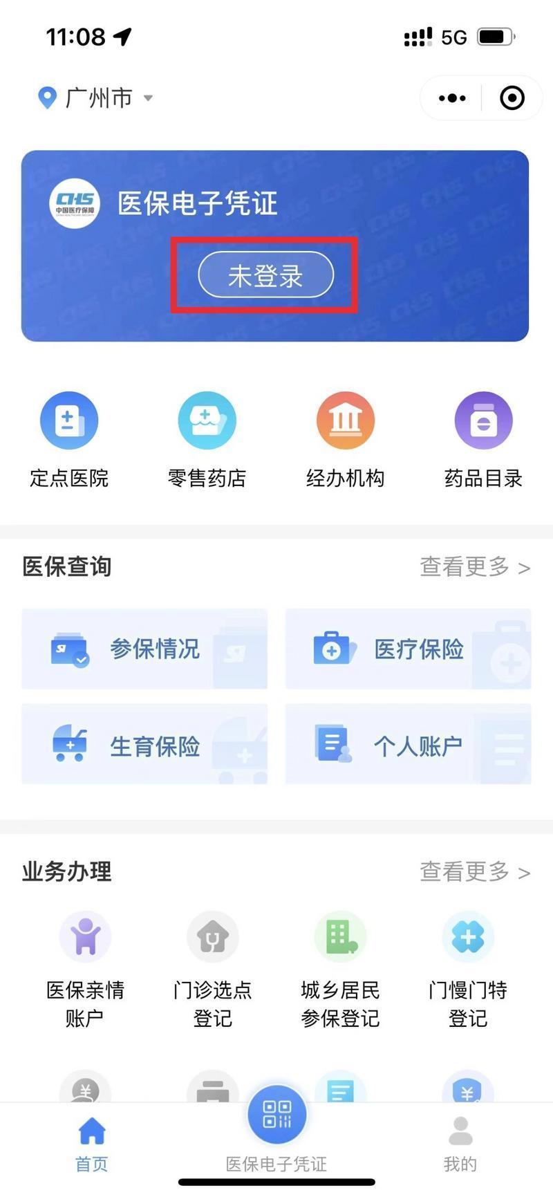 进入“粤医保”,点击“未登录”,登录“粤医保”。