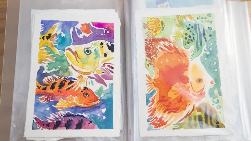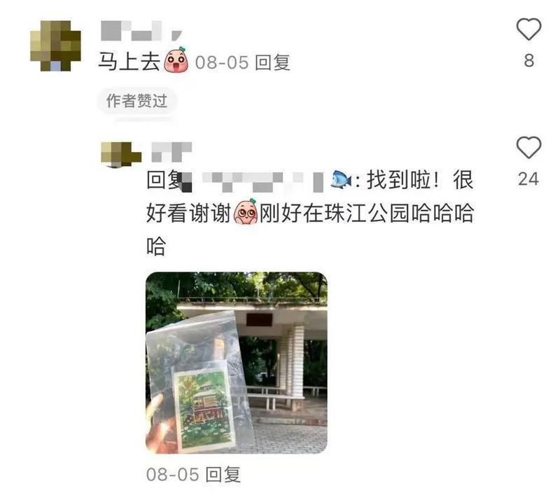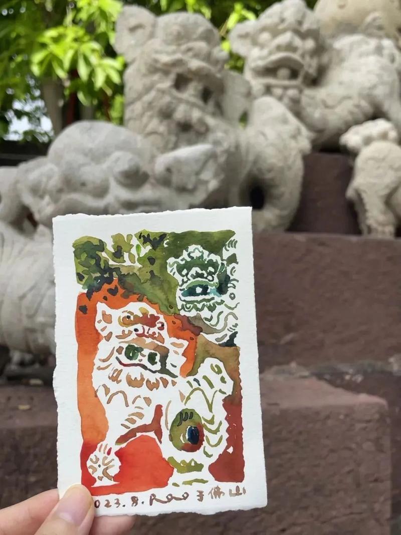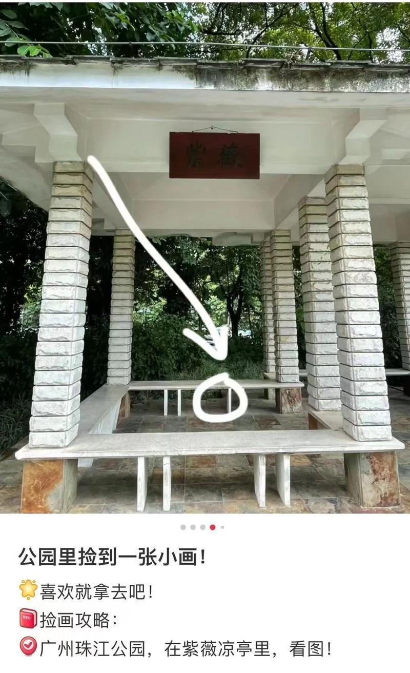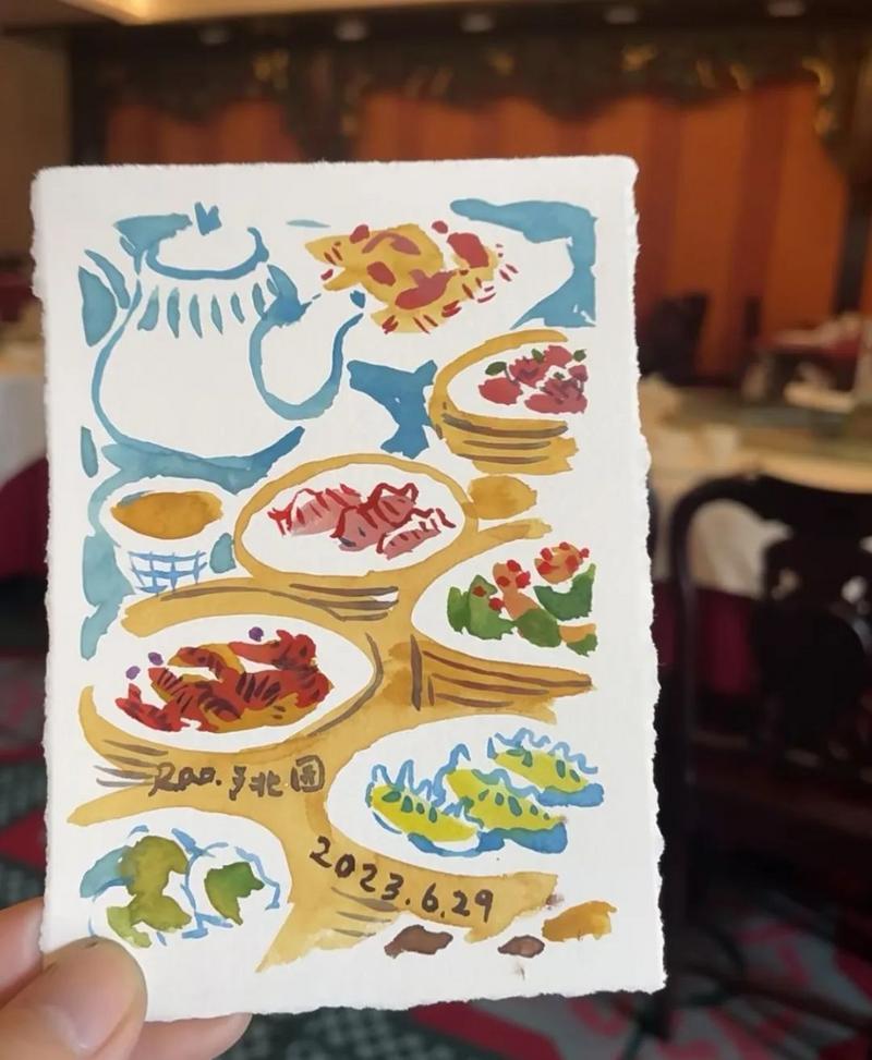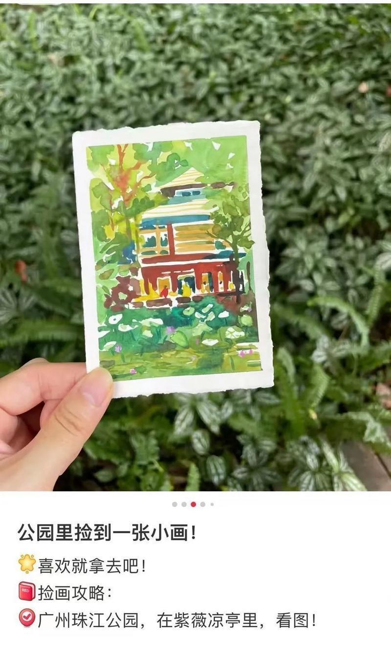 去年6月,在受到其他绘画博主“藏小画”活动的启发下,付娆在广州开启了“藏小画”活动。“第一次发起‘藏小画’活动,是在广州一个早茶店,刚好那天带着画材,当时就想把广州早茶的红米肠、虾饺画下来,这样过来吃东西的人,也可以参与‘藏小画’的游戏当中去,那篇帖子浏览量很快上千了,我能感觉大家对小画的喜爱,这也是鼓励我继续做下去的原因。”