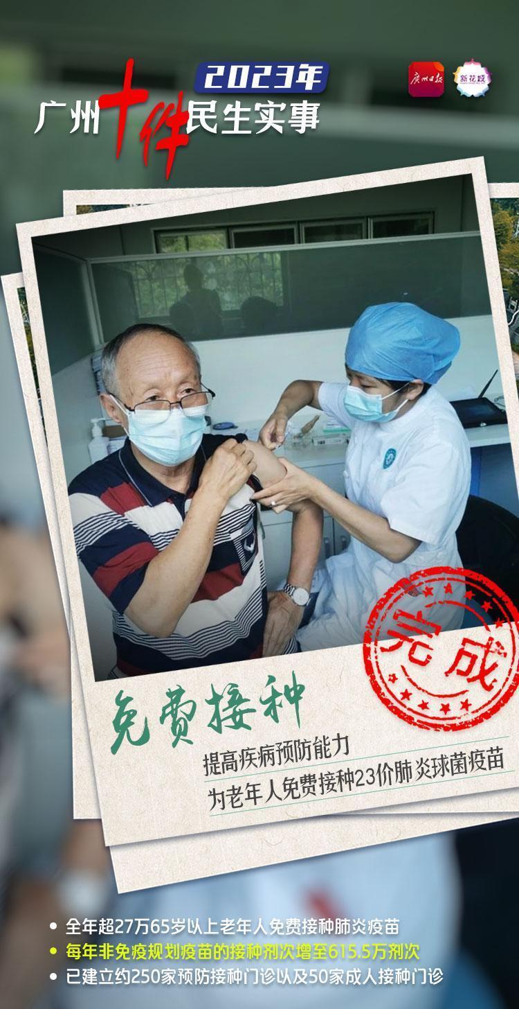 “提高疾病预防能力,为老年人免费接种23价肺炎球菌疫苗”是去年广州十件民生实事之一,旨在降低老年人群肺炎球菌感染率、重症率和病亡率,避免与新冠病毒感染、季节性流感产生叠加效应,为老年人群体搭建更牢固的免疫屏障。该项目一推出,即受到老年人的热烈响应。广州市卫生健康委通过一系列有力措施推动项目落地实施。截至去年底,全广州共有超过27万名65岁及以上老年人免费接种了23价肺炎疫苗,为每名参与老人节约了约200元的疫苗费用,项目见成效、群众得实惠。