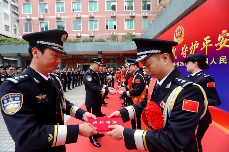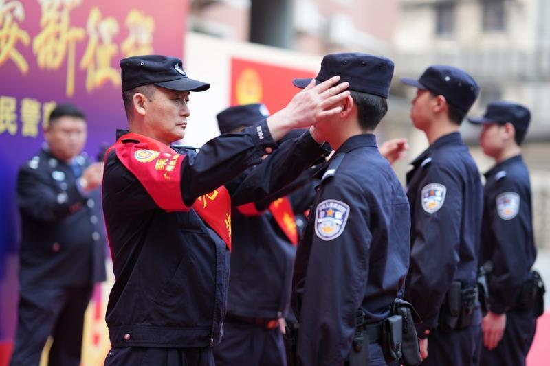 在新老民警交接仪式中,荣誉退休民警将单警装备交到2023年新入职民警手中,新警接过并戴上腰带,相互敬礼致意。“我们将接过前辈的‘接力棒’,以先进典型为学习榜样,虚心学习、苦练本领,为护航铁路运输生产安全贡献自己的青春和力量!”首次参加警察节活动的新警欧泓材激动地说。