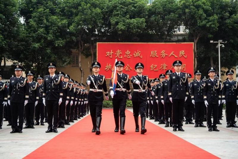 上午10时整,市公安局升警旗仪式正式开始。全体参加人员整齐列队、精神抖擞,仪仗人员迈着铿锵有力的步伐,护卫着警旗行进至升旗台。伴随着嘹亮的中国人民警察警歌,警旗迎风飘扬,徐徐升起,参加人员向警旗庄严敬礼。随后,在副市长、市公安局党委书记、局长张锐的带领下,全体人员重温《公安机关人民警察誓词》,铮铮誓言回响,展现了广州公安忠实践行党和人民赋予的新时代使命任务的决心和信念。