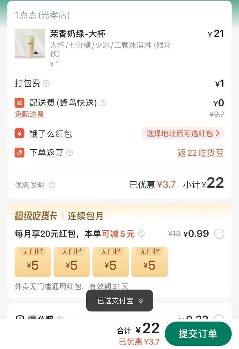 不过,由于目前两家外卖平台针对该品牌的饮品有相应配送费减免,因此,商家小程序与外卖平台下单同一款饮品,最终价格反而是商家小程序更贵。据了解,“一点点”在店面打包的包装袋和外卖服务所使用的包装袋,主要是塑料袋与纸袋,店面打包不收取打包费用。