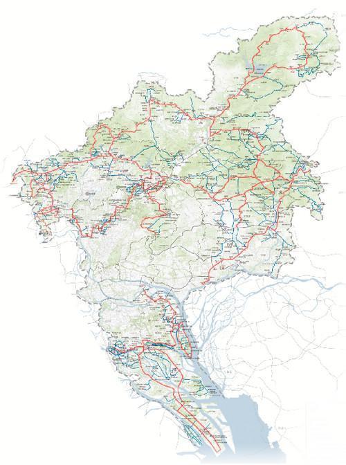 红线为乡村风景道主线,蓝线为支线