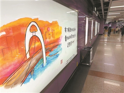 “这就是广州这座城市的底色,而且跟人潮汹涌的地铁站很搭。我自己也常坐地铁,经过中山纪念堂站,我希望自己的画作能够让在这里搭乘地铁的人会心一笑,给大家一些正能量,在上班下班的忙碌路上感受到温暖和振奋。”他说。
