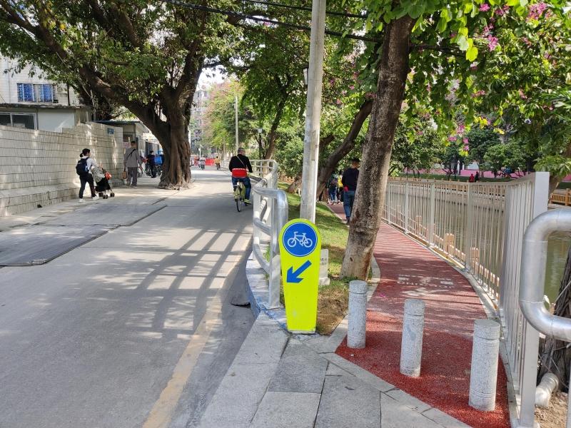 此前,驷马涌两岸房屋建筑紧凑,滨水空间狭小,涌边仅具备快速穿行的功能,十分影响周边居民出行。此次改造,对原有水边到楼边的有限空间进行整合,科学合理规划漫步道、跑步道、自行车道、机动车道,创造性实现人车分流。沿线增加标识导向牌,增添无障碍设施,不仅有效解决通行顺畅的问题,还最大限度保障了群众安全出行。