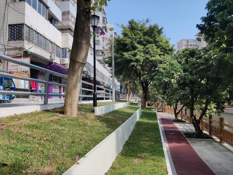当紫荆绽放、荔枝红遍、凤凰花开在路口,驷马涌畔俨然一派红云绿岸、五秀飘香的岭南水乡景象,涌边群众开门见水、推窗见景。居住在附近四十多年的张阿姨说,这次改造让大家都很满意,特别是周边的学生,放学后有了舒适的玩耍空间。