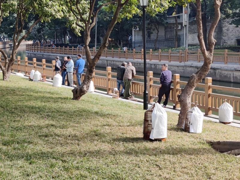 记者发现,一期工程完工后,河涌两边随处可见老人晒太阳,父母带着孩子散步,还有市民闲坐、散步、锻炼,游客打卡拍照,商肆生意兴旺。在岸边有一处设置巧妙的80米舒适遛鸟廊道,是居住在涌边老人休闲娱乐的好去处。