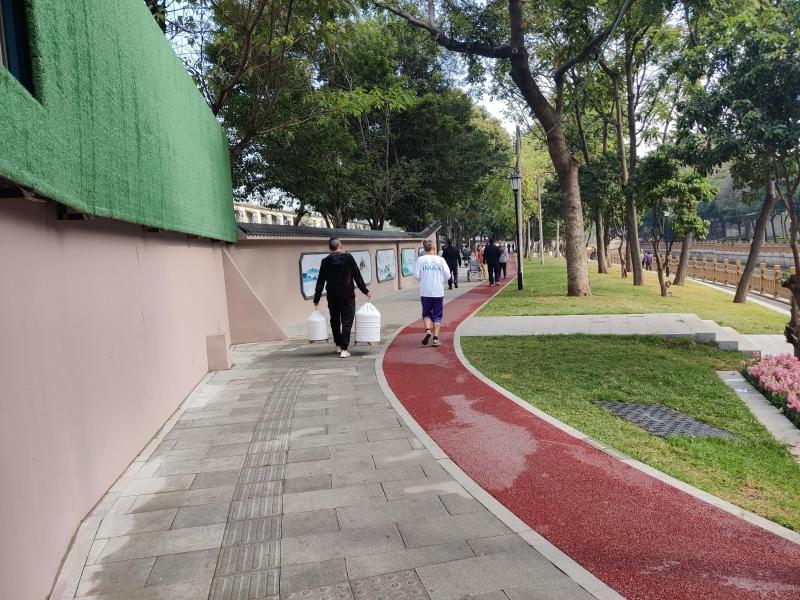 街坊廖先生表示,以前涌边泥地较多,路面凌乱,大家都不愿意走在岸边。经过改造后,岸边道路变得整洁漂亮,他平时经常会和家人来这里“city walk”,周边还有义工组织文化活动。