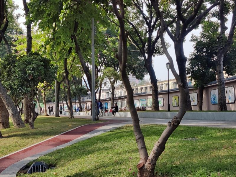 记者走访时看到,蜿蜒曲折的宽敞红色跑道点缀在绿岸,旁边还有专门的漫步道,不少群众在上面跑步晨运、散步休憩。杜凡介绍,跑道曲直结合,是为了顺应地形避让大树,未来跑道还将接入珠江口沿岸绿道。