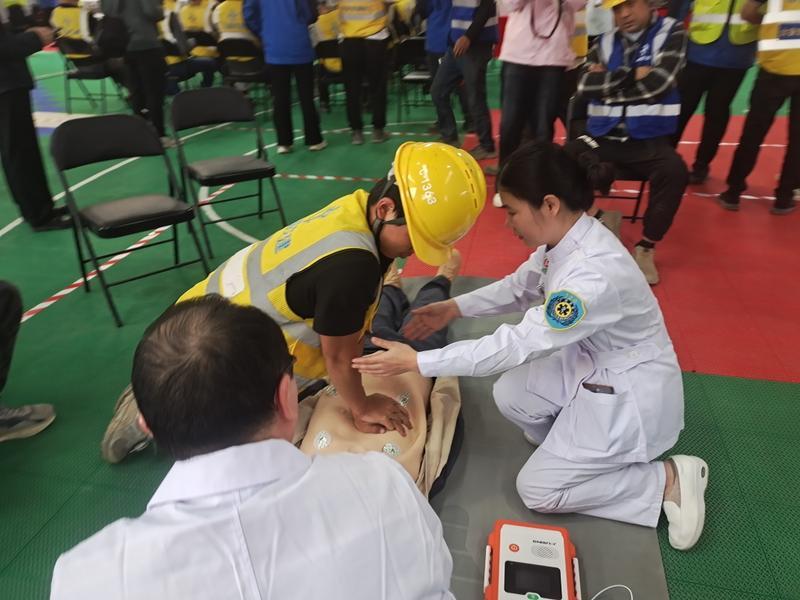 主办方表示,产业工人职业健康助企行系列活动的举办,目标是集结工会和医疗机构的力量,进一步提高产业工人健康意识和健康管理能力,解决看病就医不够便利的问题。活动现场设置有车载“三送(送医送药送检查)”区、科普宣讲区、急救技能培训体验区、专家咨询区和展示区五个分区。