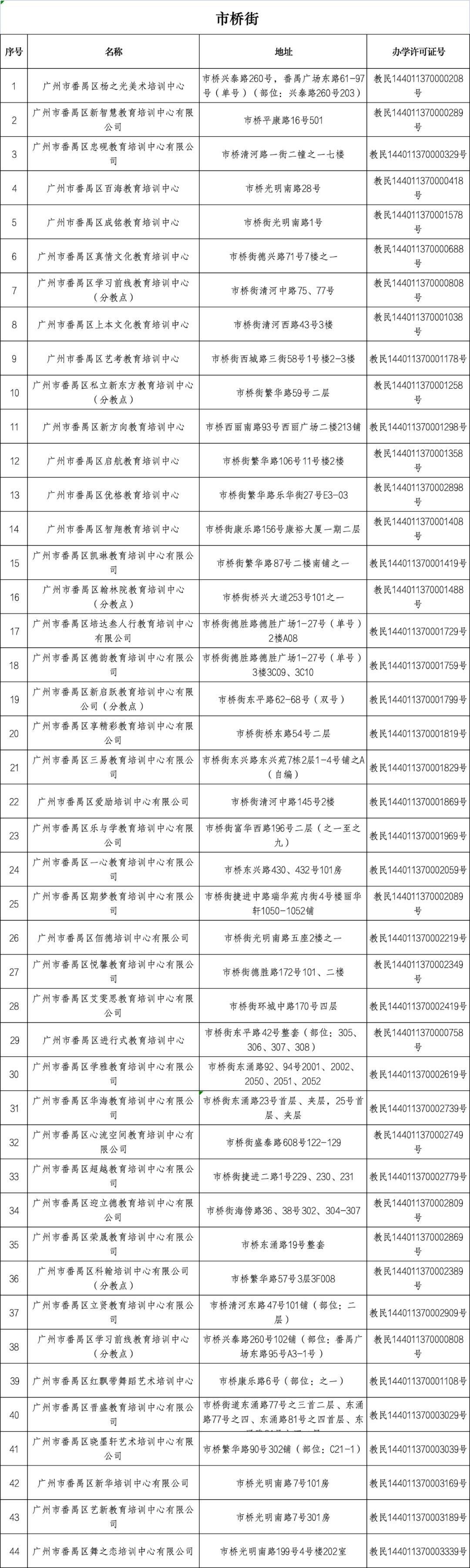番禺区面向中小学生举办的非学科类校外培训机构白名单