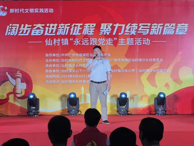 ▲2023年6月30日,仙村镇人大副主席、挂村领导袁清泉为现场党员、群众作理论宣讲