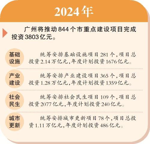 报告提出,要激发有潜能的消费,扩大有效益的投资,形成消费和投资相互促进的良性循环。在投资方面,广州今年将推动844个市重点建设项目完成投资3803亿元。李海洲介绍,为确保市委市政府各项决策部署落实到位,要充分发挥重点项目对促投资稳增长的支撑引领作用;更重要的是,要围绕国家重大战略和高质量发展首要任务,谋划储备一批打基础、利长远、增后劲的重大项目。
