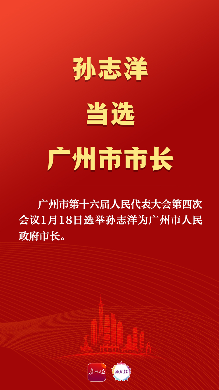 广州市第十六届人民代表大会第四次会议1月18日选举孙志洋为广州市人民政府市长。