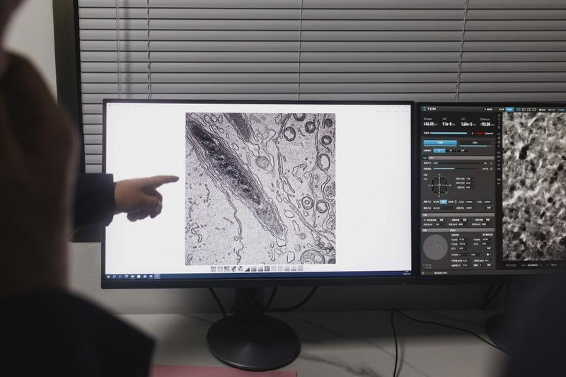 曹峰表示,“太行”是拥有原子级分辨率的显微放大设备,信息分辨率达0.2nm,可以呈现大多数晶体的排列结构。广州日报记者现场看到,“太行”能清晰呈现小鼠大脑中的髓鞘组织、小鼠肝脏细胞的里的线粒体。“它是多个技术的复合体。我们必须在每个环节都做到极致,才能保证设备整体达到超高分辨率。”曹峰说。