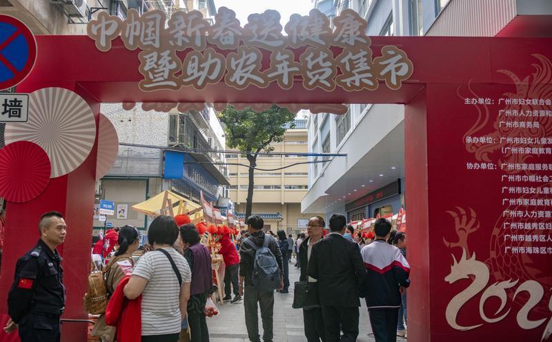 活动当天,在广州市妇联综合大楼(德政)一楼还举办了“乡村振兴”助农迎春年货集市。过年时广东人家里少不了的年橘、兰花等年宵花也出现在集市中,煞是惹人喜爱。不少市民也在来自南沙的疍家美食、西北的红枣、贵州的茶叶等富有地域特色摊位前驻足。在义诊送健康区,女医师协会、钟南山医学基金会等机构为广大妇女儿童提供健康义诊,吸引了市民前往体验。