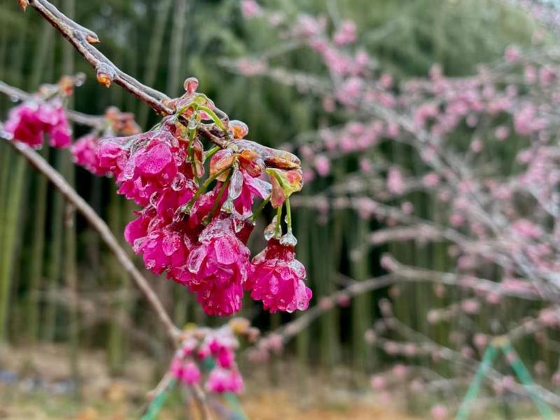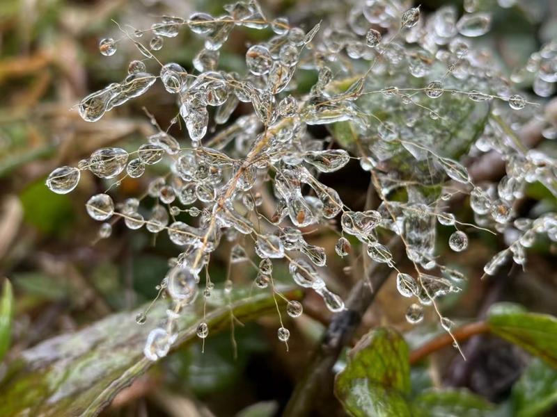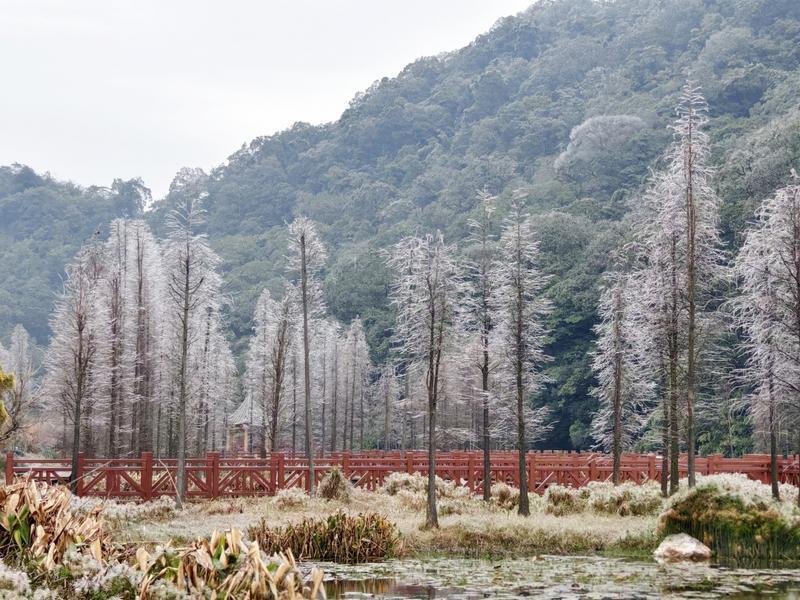 今天(1月23日)清晨,受冷空气影响,广州石门国家森林公园迎来了今年的首场雨夹雪,公园内的花草树木都披上了一层银装,为游客带来了一场视觉盛宴。