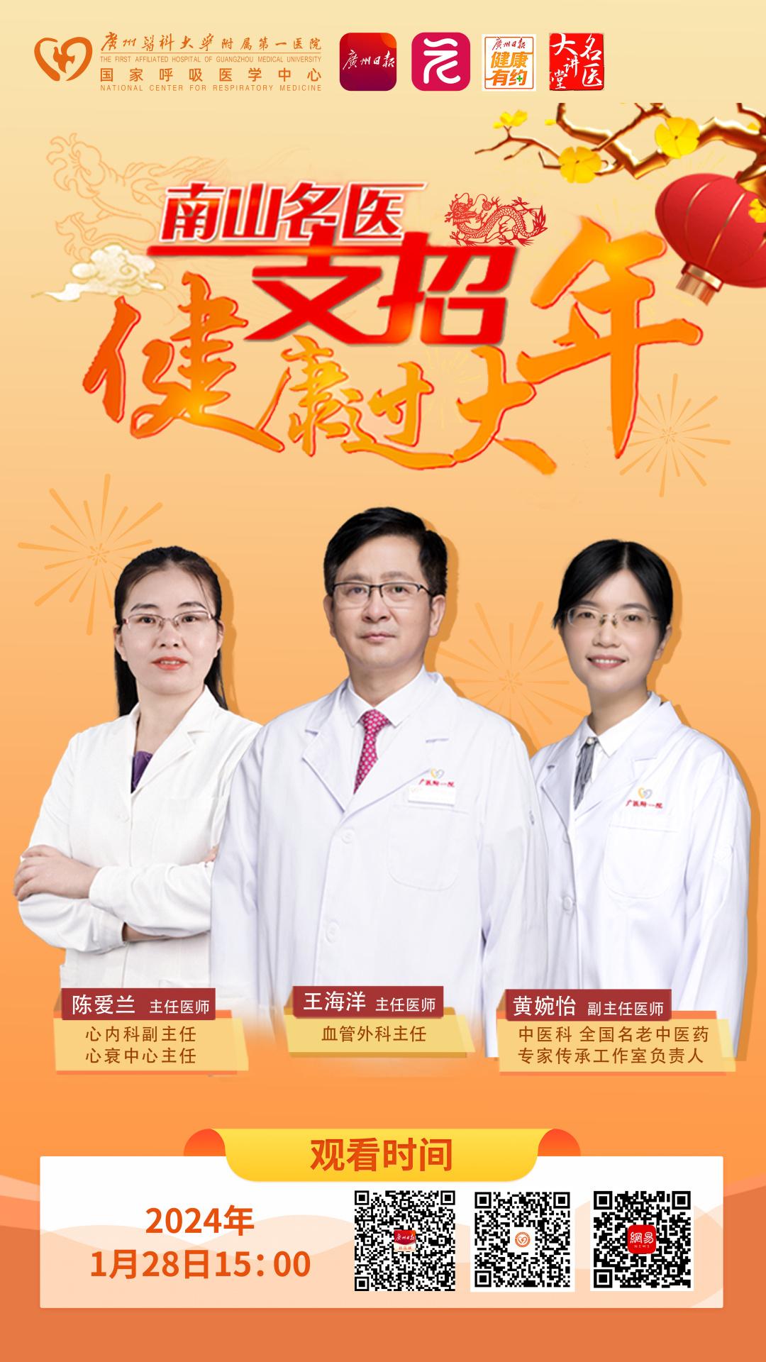 1月28日下午15时,广州医科大学附属第一医院南山名医团多位专家将在广州日报新花城客户端播出微课堂,为你支招如何健康过大年!查看详情>>>