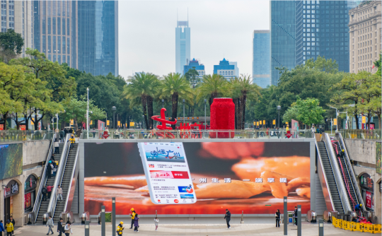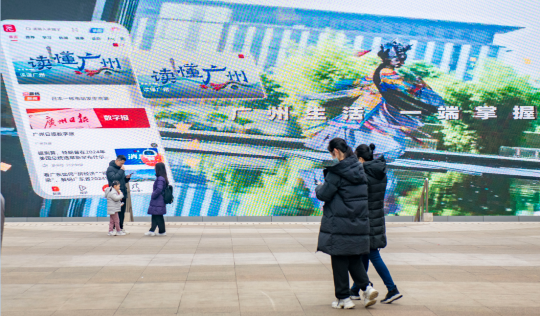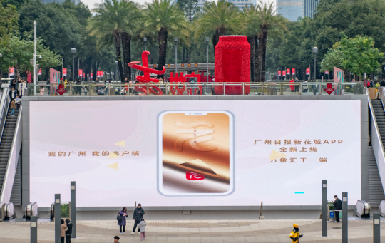 当天,不仅在“最高处”亮相,广州“花花”还现身全城多处户外大屏。在花城广场南广场下沉广场、流花展贸中心等人流旺盛地段,“广州日报新花城”客户端主题宣传片在建筑大屏上轮番播放,吸引许多路过的市民游客驻足观看。