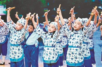 花都区梯面小学乡村学校少年宫客家山歌队表演了省非遗“客家山歌”项目《少年强就国家强》。