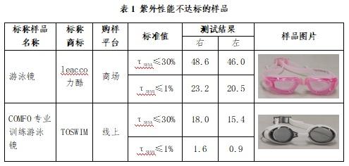紫外性能是户外运动防护的重要性能指标,抗紫外线性能低的产品不能有效地阻隔户外运动时紫外线对人眼的伤害。2款样品紫外性能不达标。
