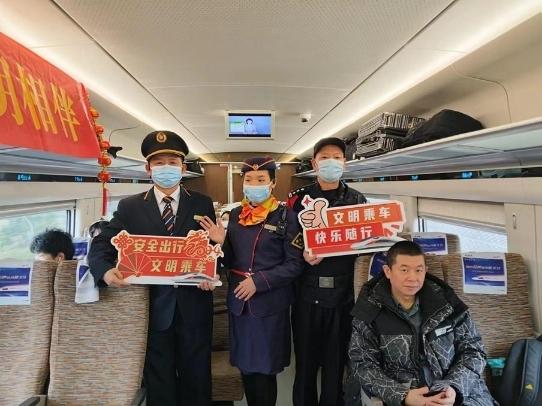 为了营造良好的列车乘车环境,努力实现“平安春运、有序春运、温馨春运,让旅客体验更美好”的春运工作理念,1月29日,广铁集团广州客运段江湛动车队61班值乘的广州南开往湛江西的C6907次列车,开展了“温暖春运,文明相伴”活动。