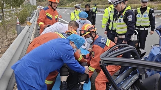 经过12分钟的紧急救援,救援人员成功救出被困司机,并移交给现场医护人员送往医院接受进一步救治。