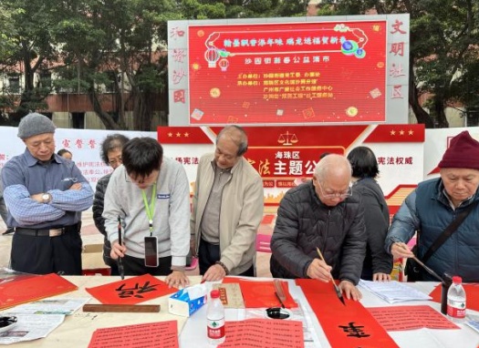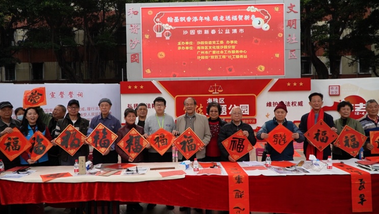 在新春佳节来临之际,为了营造祥和的春节氛围,1月31日,“翰墨飘香添年味,瑞龙送福贺新春”沙园街新春公益集市在广重广场启动。