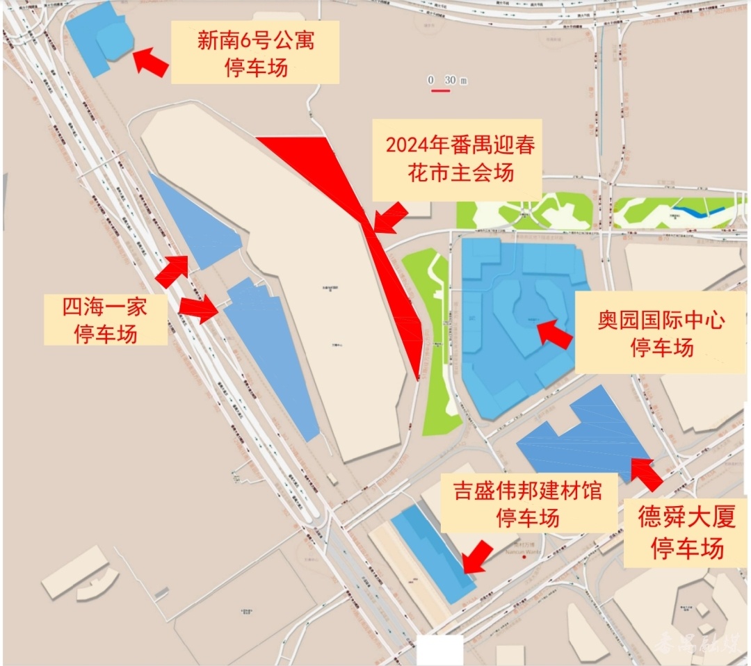 本届番禺迎春花市期间,主会场周边设立了5个社会车辆停车场供自驾车主停放爱车: