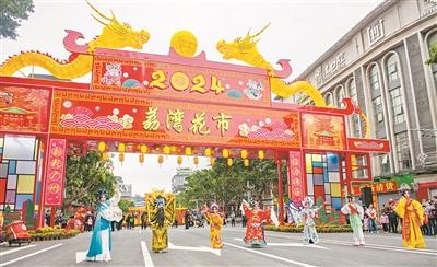 2月6日上午,随着一声锣鼓响,2024年荔湾区传统迎春花市正式开市。同日,2024广州水上花市启动。本次荔湾花市以“年富‘荔’强,花开‘湾’区”为主题,选址在荔湾路,寓意千年花香的荔湾区在2024年龙年蓬勃发展的愿景,旨在打造“传统花市+科技灯光+活动表演+非遗展示+高科技沉浸式互动体验”的新春欢乐嘉年华。