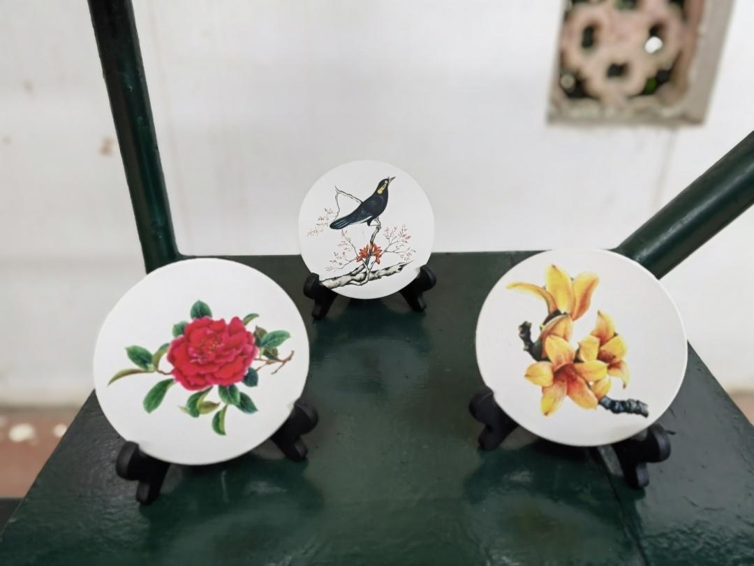 这次在第五兰棚展区展出近20幅非遗通草画,其中有通草画绘制技艺传承人颜康平和通草画传承群体代表黄碧丽的作品。颜康平是通草画绘制技艺传承人,其作品被国家版本馆广州分馆、广东省工艺美术博物馆等多家机构以及海内外藏家珍藏。颜康平技艺娴熟精湛,作品造型准确、赋彩臻丽,不仅能呈现出如文献记载的通草画“宛若堆绣”的质感效果,更完整保留了清代外销画融贯中西的独特韵味。黄碧丽作为通草画传承群体代表,擅长在通草画上描绘风景、花卉,精通通草画颜料制作,并积极开展通草画文创设计。