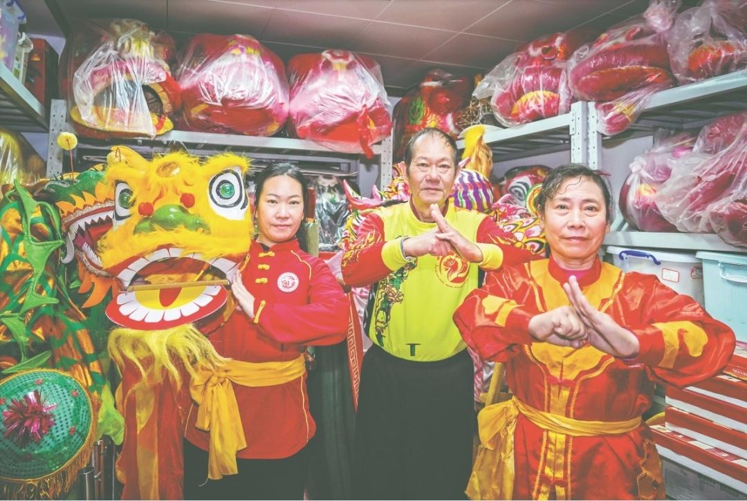 两代醒狮传承人传承醒狮文化。